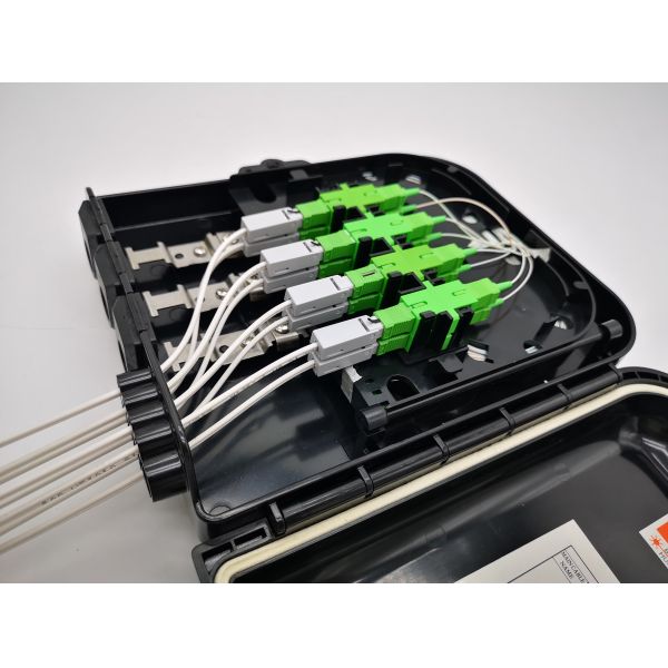 The box fully load is 1pc 1x8 splitter and 8pcs SC adapters, it can use any kind of fast connectors, there is enough space for the fast connector and drop cables.